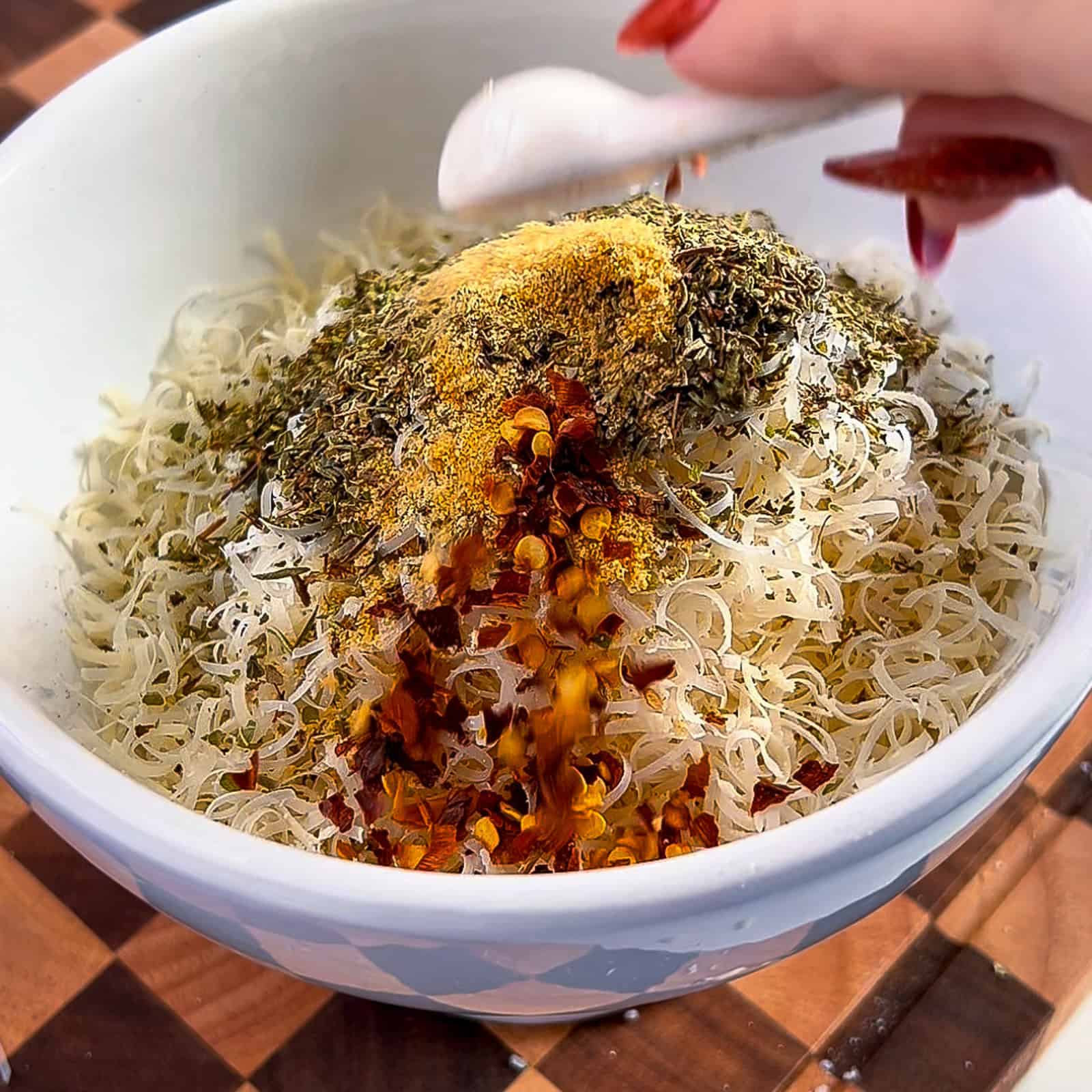 - Make the crispy topping. In a small bowl, mix together breadcrumbs, Parmesan, Italian seasoning, garlic powder, and crushed red pepper. Stir to combine.