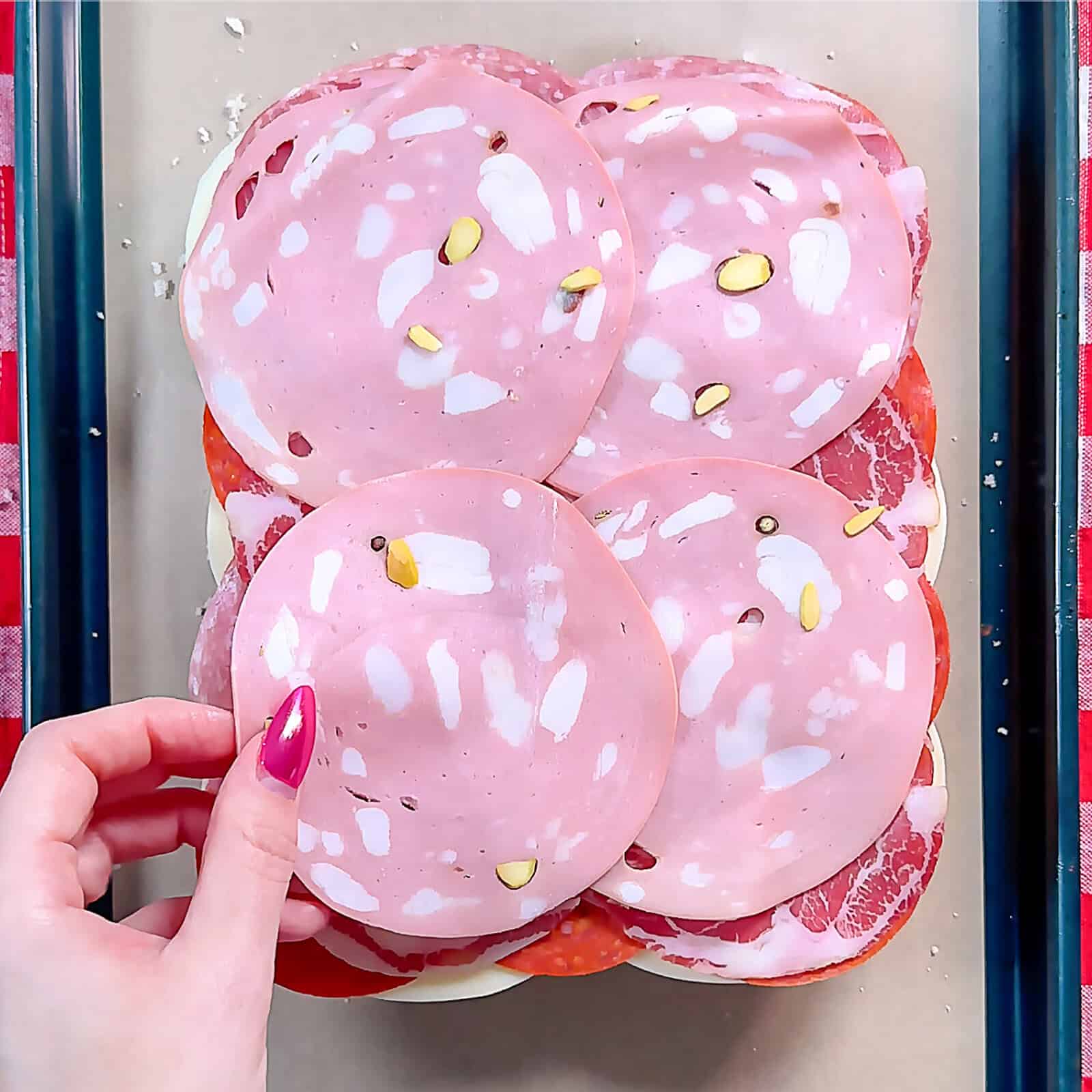 - Add the meats. Layer on the pepperoni, Genoa salami, sweet capicola, and mortadella evenly across the rolls.