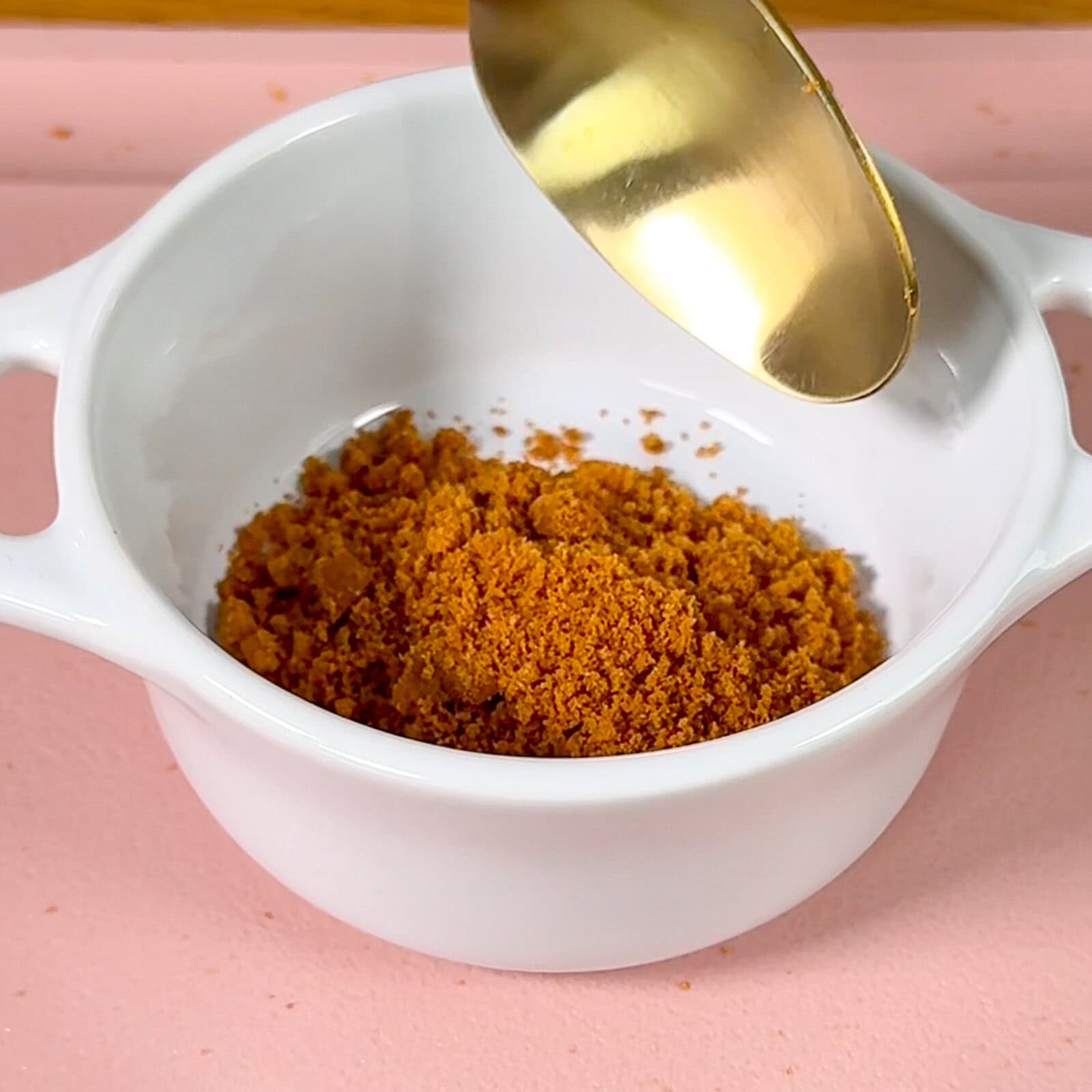 - Crush 1 Biscoff cookie and add the crumbs to the bottom of a small dessert bowl or dish.